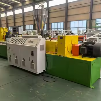 這是整個(gè)生產(chǎn)流程的核心環(huán)節(jié)。混合好的粉料通過真空上料機(jī)被吸入錐形雙螺桿擠出機(jī)的料斗中。