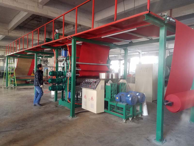 PVC與地毯復(fù)合腳墊設(shè)備:PVC復(fù)合地毯設(shè)備是目前市場(chǎng)上較為流行的一種家用及商業(yè)地毯。它具有環(huán)保,美觀,價(jià)廉,實(shí)用取用市場(chǎng)的青睞,本公司所生產(chǎn)的PVC及TPR復(fù)合地毯生產(chǎn)設(shè)備具有良好的穩(wěn)定性,能連續(xù)加工多種規(guī)格的PVC底膠復(fù)合鋪地地毯,可適應(yīng)多種片材或卷材培毯,可將卷材按規(guī)定的尺寸自動(dòng)切割成方塊地毯,設(shè)備設(shè)計(jì)合理,操作簡(jiǎn)單。