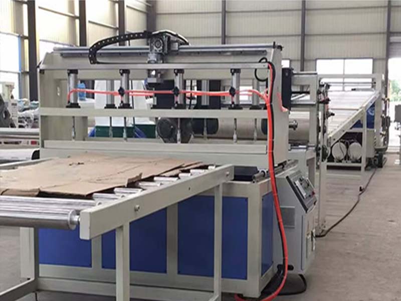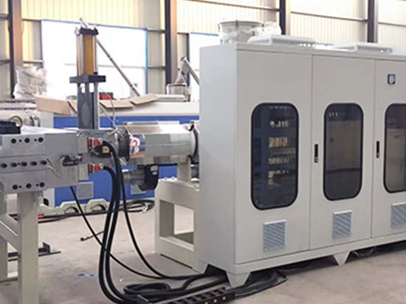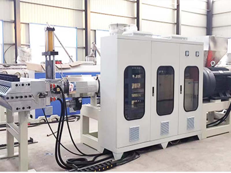 生產(chǎn)線采用高塑化單螺桿擠出機(jī)、液壓自動(dòng)換網(wǎng)器、相應(yīng)產(chǎn)品寬度的衣架式可調(diào)模具、立式三輥壓光機(jī)、預(yù)冷卻裝置、三合一輥筒恒溫機(jī)、不銹鋼冷卻托架裝并裝有寬幅可調(diào)切邊刀、耐磨橡膠輥牽引機(jī)、縱橫向切割機(jī)機(jī)。生產(chǎn)線采用立體電控柜:西門(mén)子PLC控制系統(tǒng)、施耐德低壓電器、馳名品牌變頻調(diào)速器。