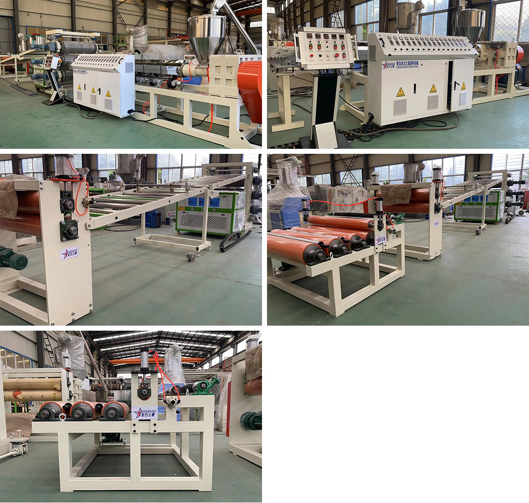 PE化學(xué)發(fā)泡片生產(chǎn)線:該設(shè)備采用120-30比1單螺桿擠出機(jī)、液壓自動(dòng)換網(wǎng)器、可調(diào)模具、立式三輥壓光機(jī)、三合一輥筒恒溫機(jī)、不銹鋼冷卻托架裝并裝靜電處理裝置及有寬幅可調(diào)的合金切邊刀、橡膠輥牽引機(jī)、雙工位氣漲軸收卷機(jī)。全線采用:日本歐姆龍智能溫控儀、施耐德低壓電器、國(guó)內(nèi)馳名品牌變頻調(diào)速器。