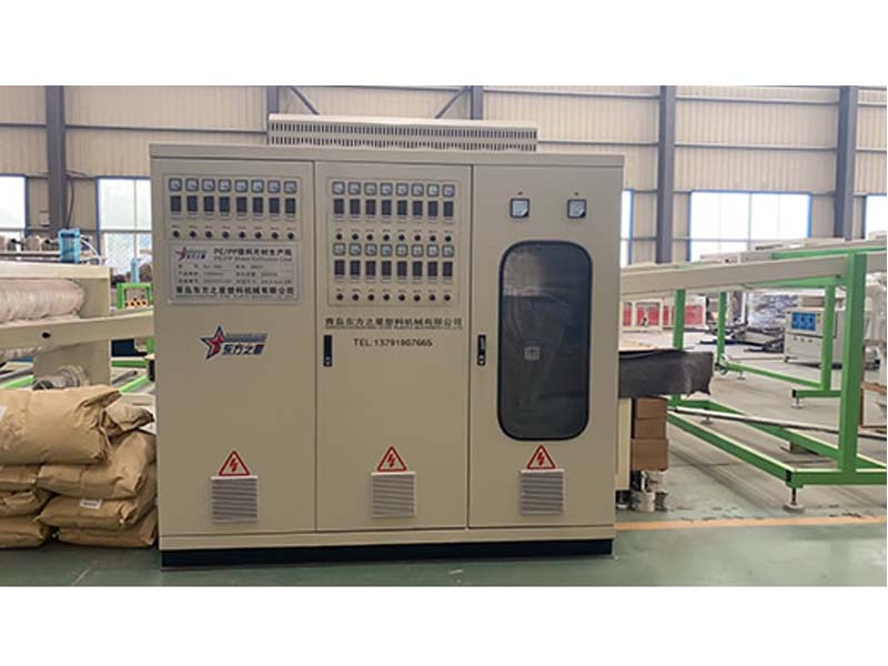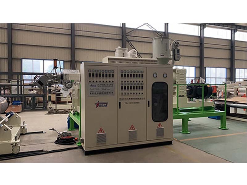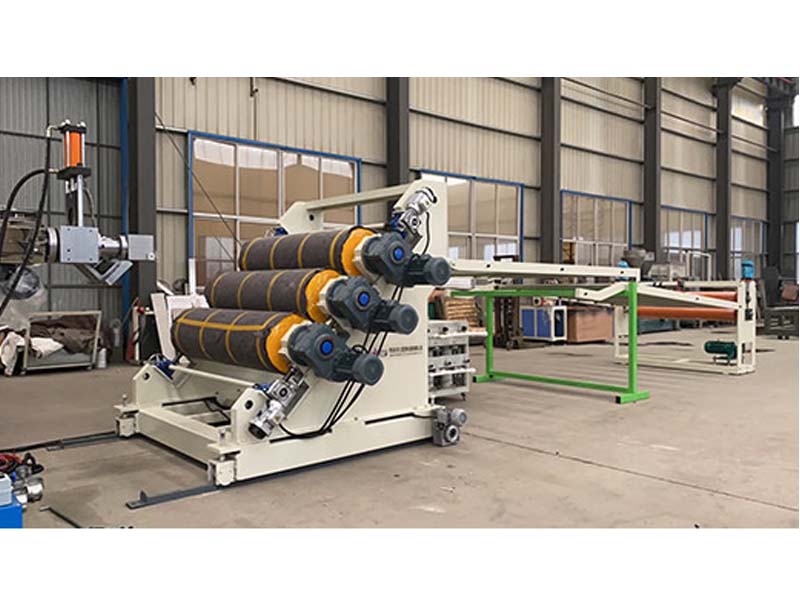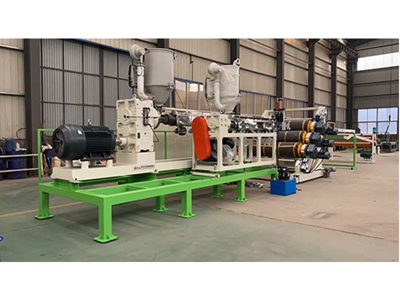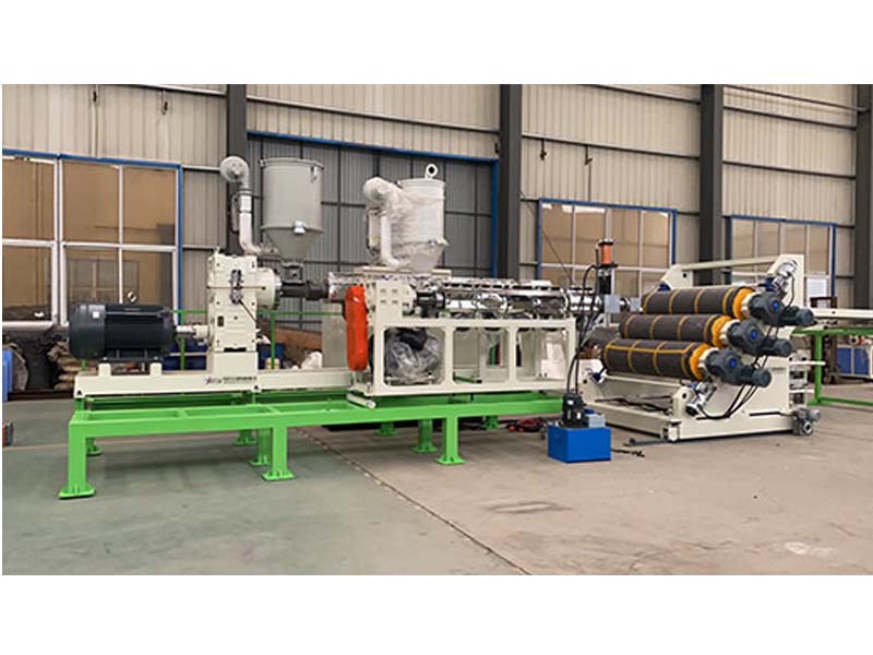PP三層共擠片材生產(chǎn)線:可生產(chǎn)寬度750-1500毫米、厚度0.2-2毫米、單層/雙層/三層的塑料片材。該設(shè)備采SJ90-33/1和SJ75-30/1單螺桿擠出機(jī)、液壓自動(dòng)換網(wǎng)器、A+B+A三層共擠分配器、T型彈性??诳烧{(diào)模具、斜45度三輥壓光機(jī)、三合一水溫機(jī)、不銹鋼冷卻托架并裝有寬幅可調(diào)切邊刀、橡膠輥牽引機(jī)、雙工位氣漲軸收卷機(jī)。生產(chǎn)線采用符合人體工位學(xué)的電控柜:歐姆龍智能溫控系統(tǒng)、西門子低壓電器、國內(nèi)外馳名品牌變頻調(diào)速器。